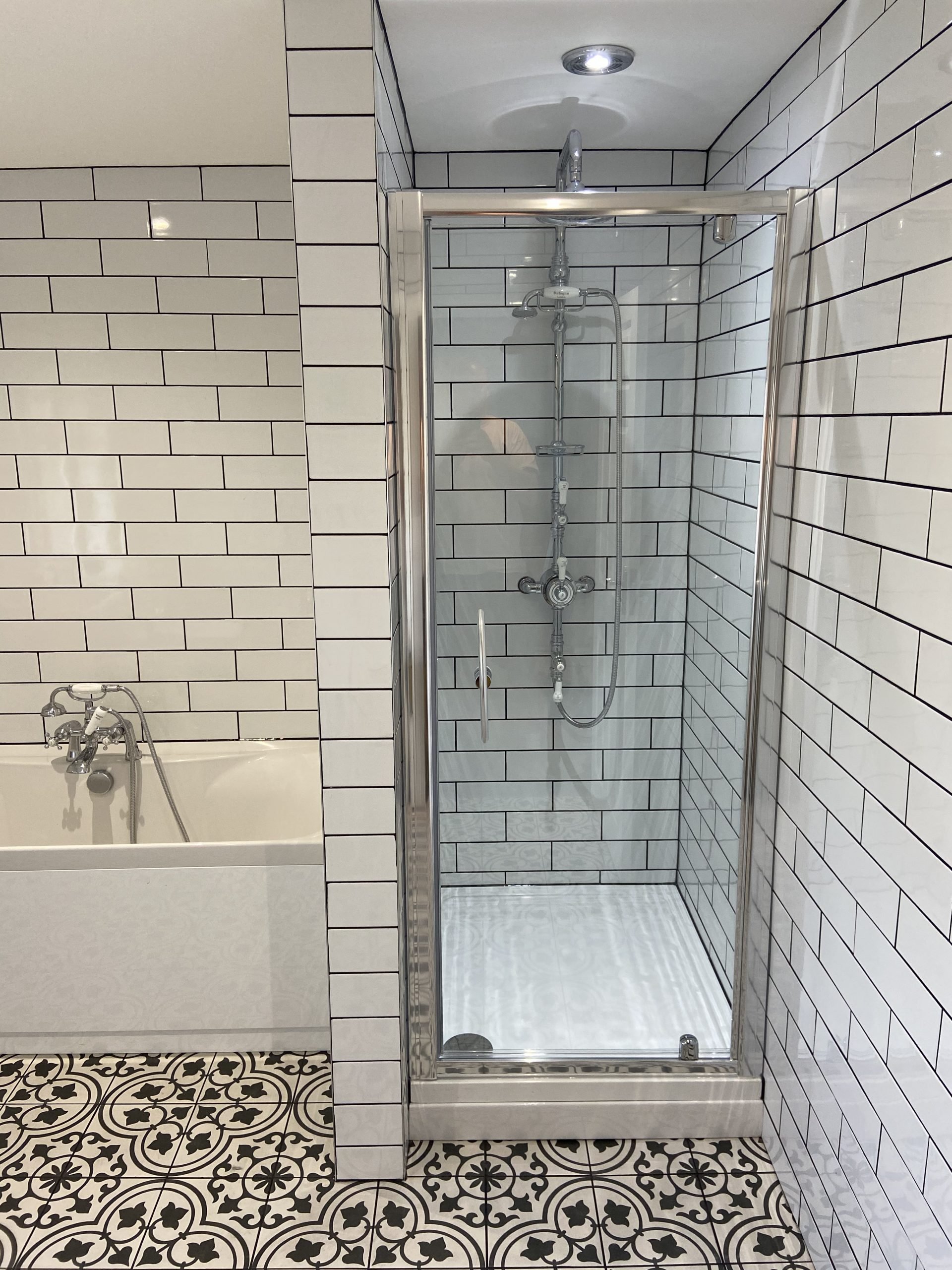 Contemporary Bathroom Design For St Ives Huntingdon Cambridge & Ramsey Recessed Shelf Shower Black and White Longer Style Tiles Related