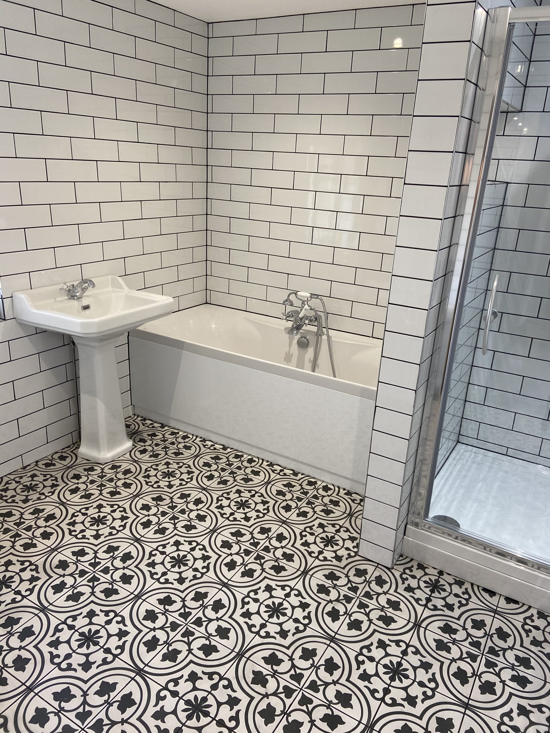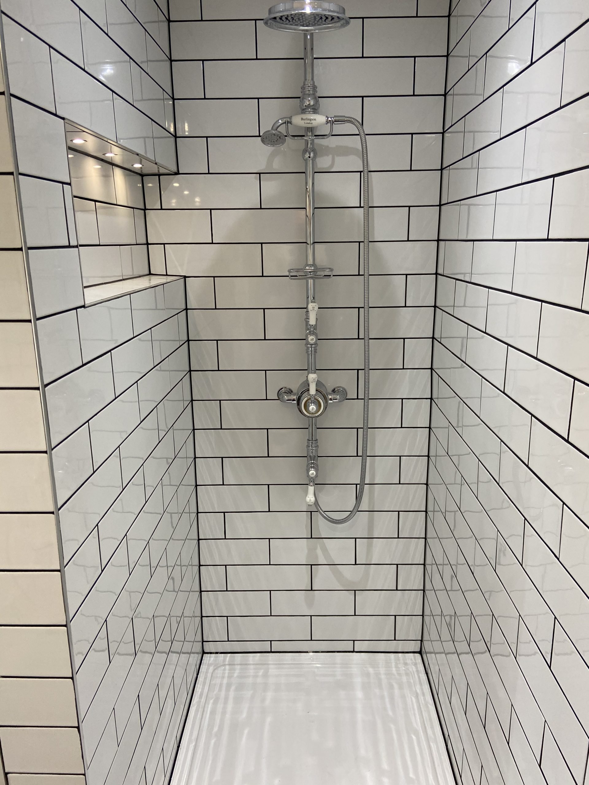 Contemporary Bathroom Design For St Ives Huntingdon Cambridge & Ramsey Recessed Shelf Shower Black and White Longer Style Tiles Related